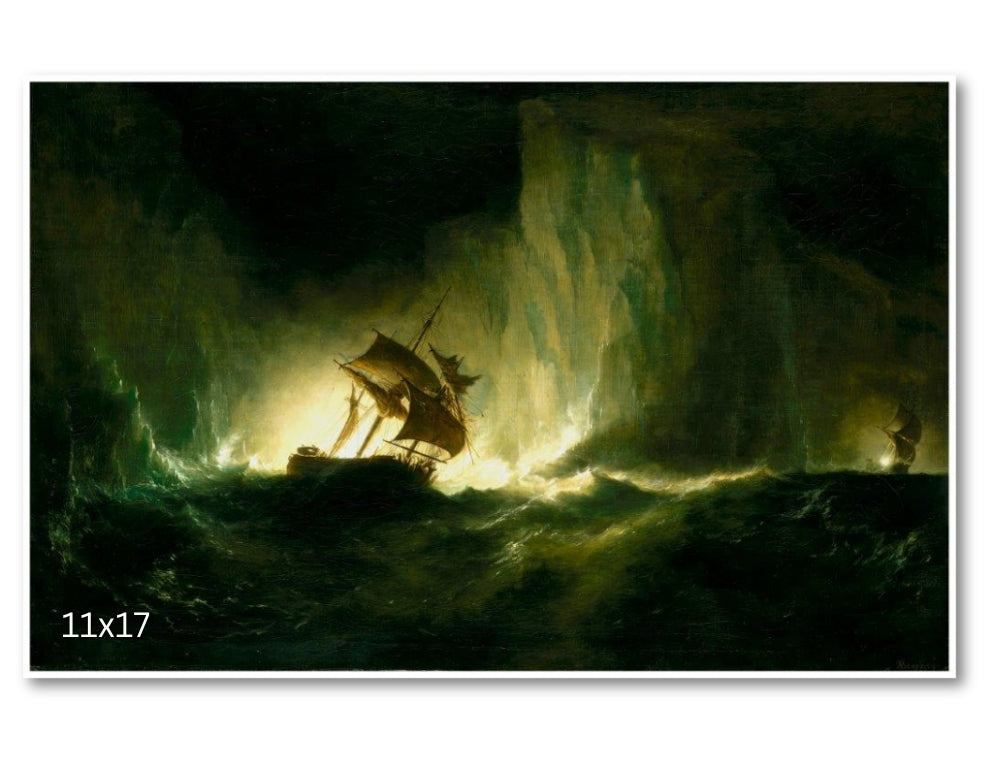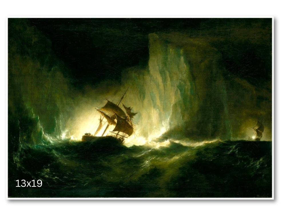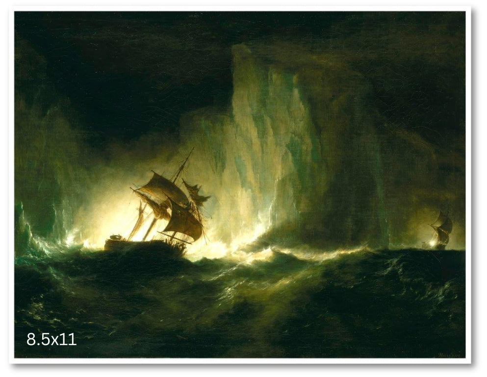 Beechey's painting portrays the iconic vessel from Sir John Franklin's ill-fated 1845 Arctic expedition, rendered with precision reflective of Beechey’s naval background. The painting captures the Erebus navigating icy waters, its rigging stark against the cold Arctic landscape. This ship’s disappearance, alongside HMS Terror, became a central mystery in Arctic exploration and expanded knowledge of Canada's North. The wreck of the Erebus, discovered in 2014 near King William Island, cemented its historical significance. Beechey’s work serves as a lasting symbol of exploration, endurance, and Canada’s Arctic heritage.