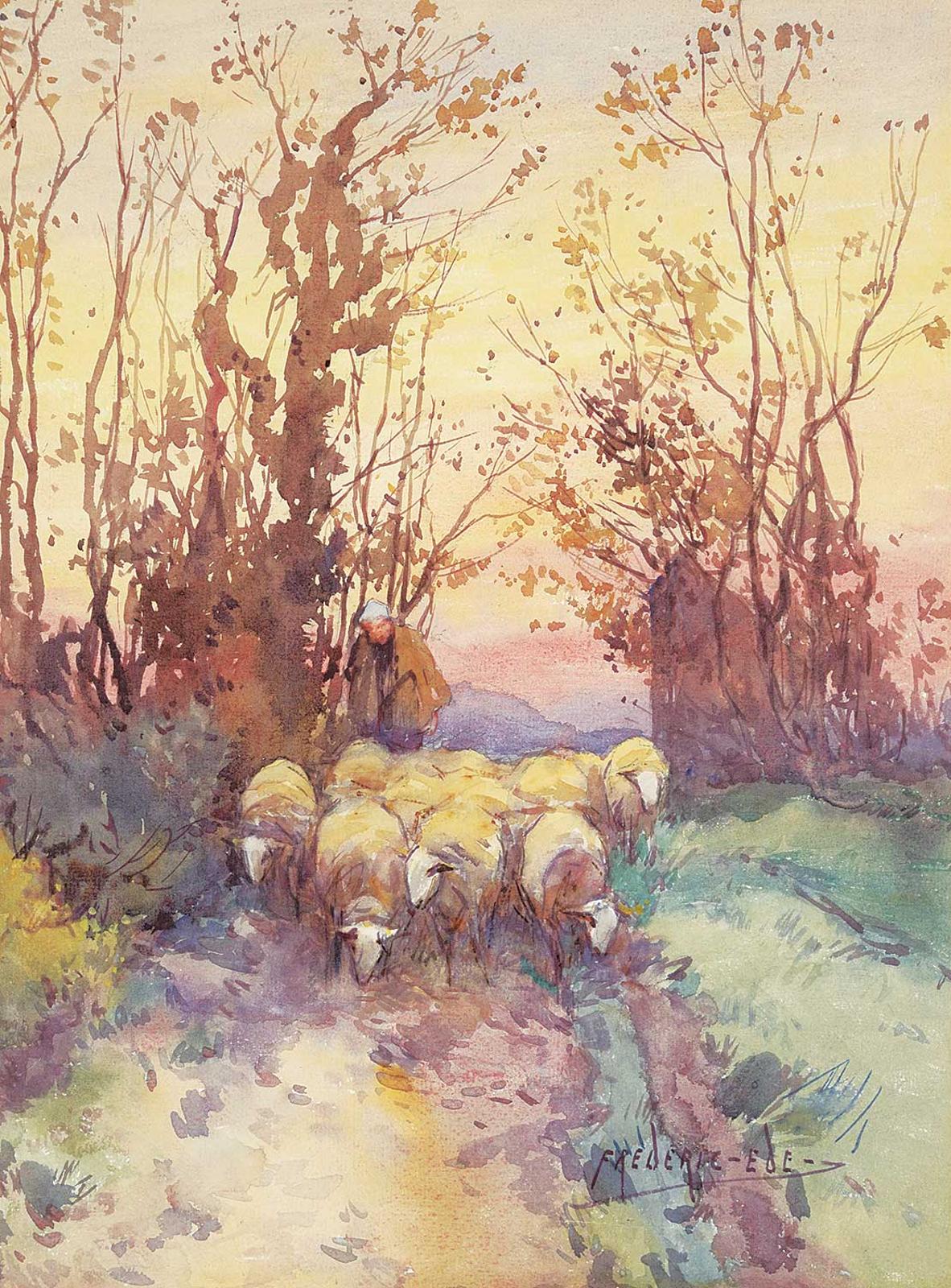 Taking The Flock Home | Frederick Charles Vipond Ede | Watercolour